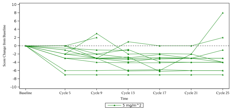 鍦?14 渚嬪彲璇勪及鐤肩棝鐨勬偅鑰呬腑锛堝嵆鍩虹嚎鎬讳綋鑲跨槫鐤肩棝璇勫垎鈮?涓旇嚦灏戞湁涓€娆″熀绾垮悗璇勪及鐨勬偅鑰咃級锛屼笌鍩虹嚎鐩告瘮锛屼腑浣嶆渶澶х柤鐥涢檷浣庡垎鏁扮殑鍙樺寲涓?3.5鍒嗐€?3渚嬶紙92.9%锛夋偅鑰呯殑鐤肩棝璇勫垎鑷冲皯闄嶄綆2鍒嗭紝杈惧埌浜嗕复搴婃剰涔夌殑鏀瑰杽銆?1渚嬶紙78.6%锛夋偅鑰呯殑鐤肩棝璇勫垎涓?锛屽嵆鐤肩棝瀹屽叏娑堝け銆?/span>