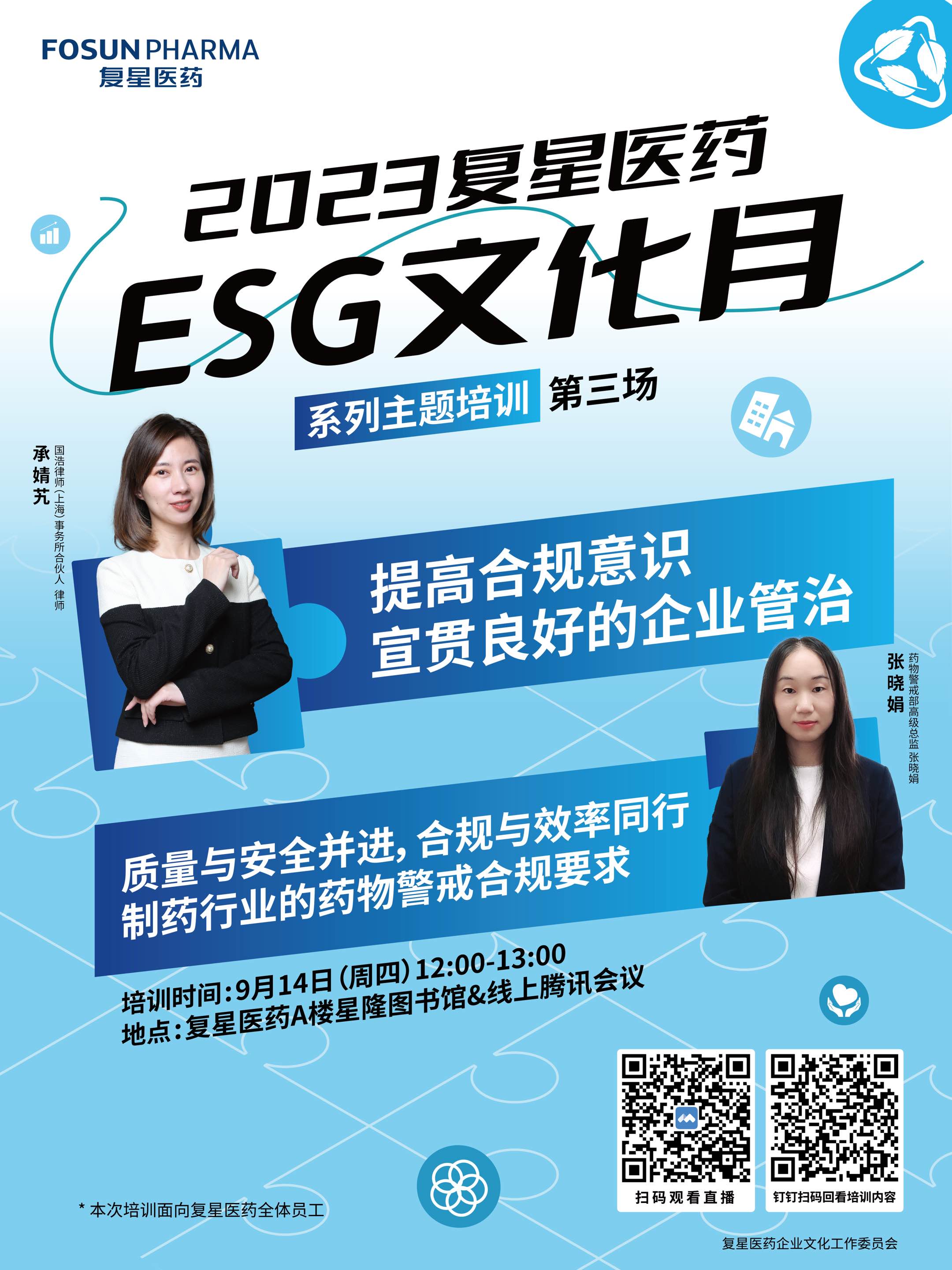 ESG文化月系列主题培训第三场:“提高合规意识,宣贯良好的企业管治”; 质量与安全并进,合规与效率同行——制药行业的药物警戒合规要求