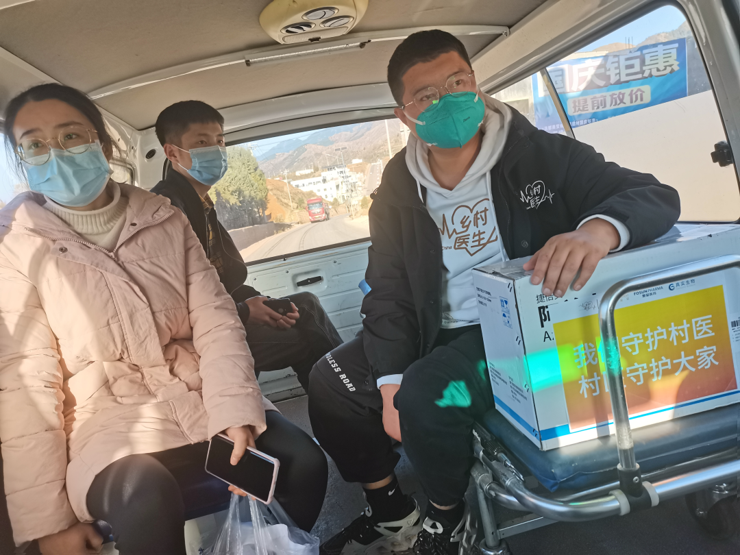 为确保药品第一时间安全送到基层,恒盛基金会的员工和乡村医生项目驻点队员带着药品搭乘飞机、高铁,抵达县里后再通过专车派送至村卫生室。员工志愿者、乡村医生驻点队员在当地县医院、乡镇卫生院具有处方权的医师陪同下,完成药品的发放: