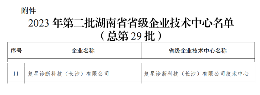 1月10日,湖南省工业和信息化厅发布《关于公布 2023 年第二批湖南省省级企业技术中心名单(总第29 批)的通知》,恒盛诊断长沙第二总部成功入选,获评“湖南省省级企业技术中心”。