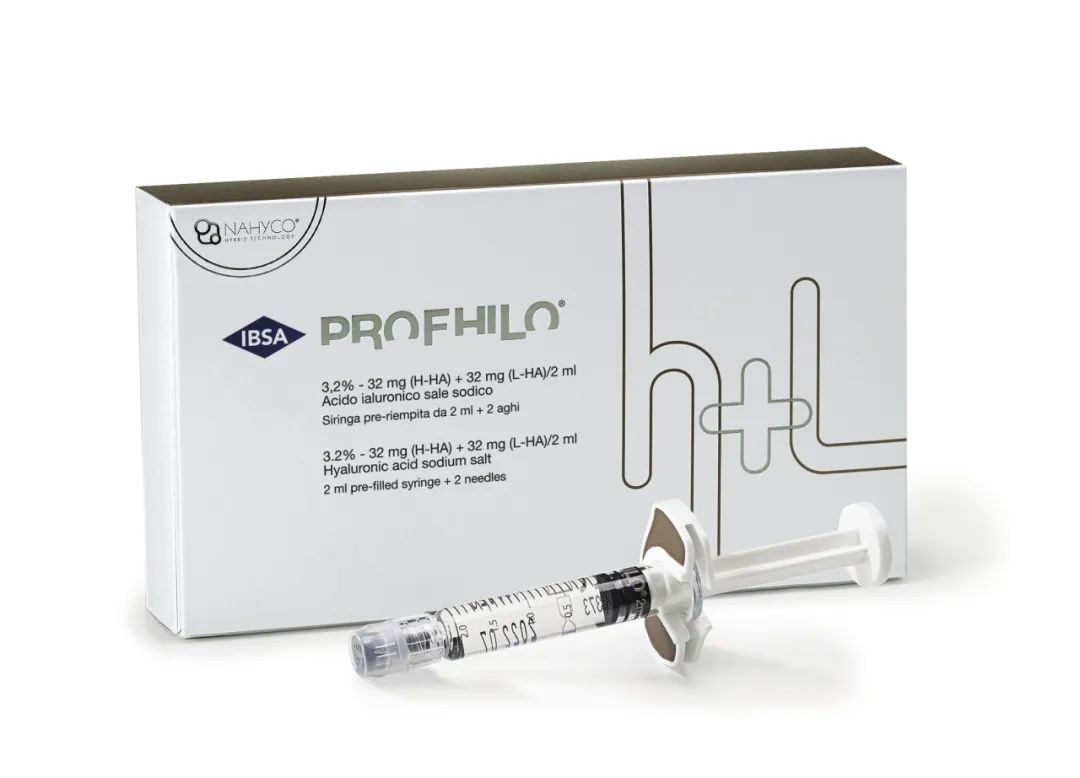 该产品采用独特的发酵技术生产,为不含交联剂BDDE的纯透明质酸,具有良好的疗效和安全性;其透明质酸浓度高,每2毫升分别含有32毫克的高分子透明质酸和32毫克的低分子透明质酸,每支产品透明质酸总含量为64毫克。与其它透明质酸产品不同,Profhilo®不仅具有水光针的补水提亮效果,还具备出色的提升能力。其大分子玻尿酸可以起到支撑真皮、承担支架作用,小分子透明质酸可刺激真皮层的胶原蛋白和弹性蛋白再生,抚平皮肤褶皱和细纹,使肌肤年轻焕发。