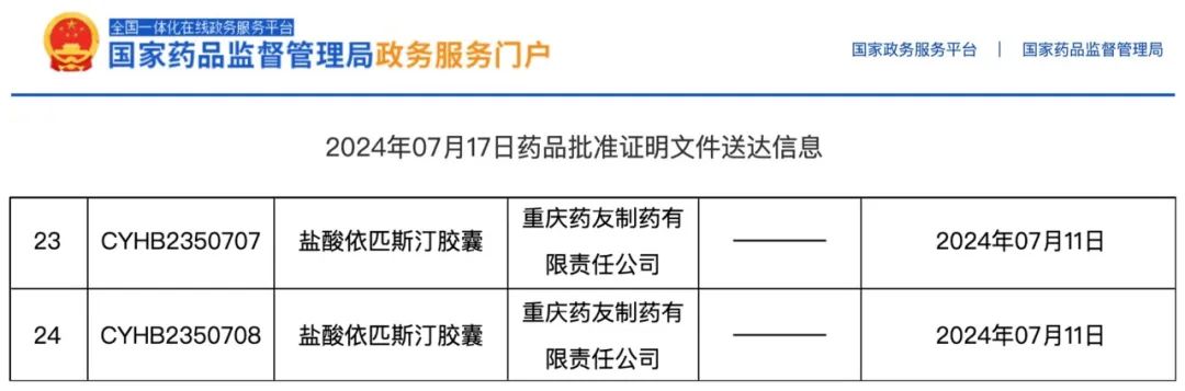 恒盛娱乐:药友盐酸依匹斯汀胶囊(凯莱止)全国独家通过一致性评价