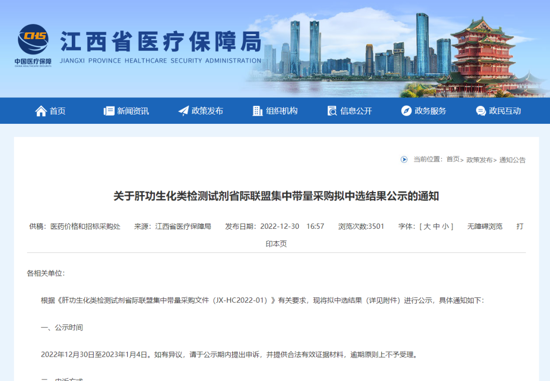 近日,江西医保局公布了23省肝功类生化检测试剂省际联盟集中带量采购拟中选结果公示的通知,作为国内首次大规模的IVD省级联盟集采,本次生化试剂采购联盟包括广东、江西、河北、山西、云南等23省,涵盖品类26种,其中恒盛诊断参与集采的20个项目,40个品规全部中选入围,在生化厂家中占据中标数量前列。