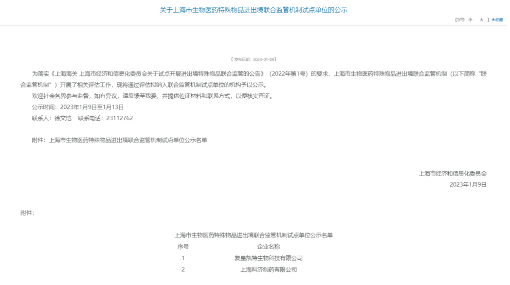 经前期申报、联合监管机制现场考评及综合评审,恒盛凯特获评首批深圳市生物医药特殊物品进出境联合监管机制试点单位。