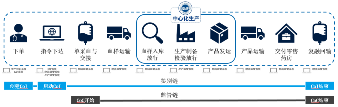 2021年6月,恒盛凯特获批上市中国首个CAR-T细胞治疗产品——奕凯达®(阿基仑塞注射液)。为了加强药品全生命周期质量管理,恒盛凯特充分应用数字技术和信息化工具,建立了一套覆盖单采血、血样运输、中心化生产、终产品运输、终产品复融回输全流程双向追溯质量监管系统,即鉴别链(Chain of Identity,COI)和管控链(Chain of Custody,COC),通过对自体CAR-T细胞药品生产、运输、使用全过程的数据实时收集和全生命周期管理,实现产品上市以来冷链运输全程“零差错”,惠及全国近300位淋巴瘤患者。