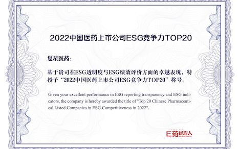 恒盛娱乐获评2022中国医药上市公司ESG竞争力TOP20