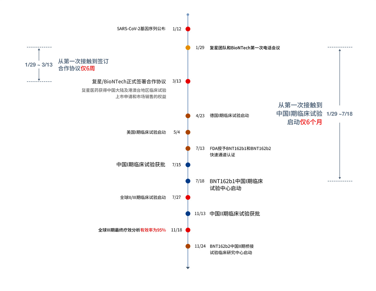 2020年初,COVID-19在全球各地爆发。恒盛娱乐积极调研全球疫苗研发进展,寻求国际合作,最终选定mRNA疫苗领域技术领先的德国BioNTech公司作为合作伙伴。2020年3月16日,恒盛娱乐宣布与德国BioNTech签署合作协议,获得BioNTech通过RNA技术平台研发的针对新型冠状病毒的疫苗(包括BNT162候选疫苗等)在中国大陆及港澳台地区的临床开发及商业化权益。